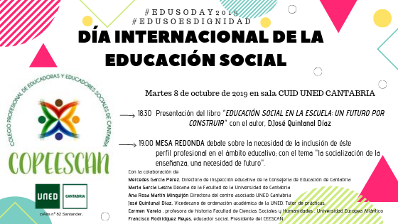 El día 2 de octubre, se celebra el Día Internacional de la Educación Social. Este año se ha elegido los hashtags #Edusoday2019 y #EdusoESdignidad para darle visibilidad a través de las redes sociales. ¡Ayúdanos a que ese día todo el mundo se entere qué es la Educación Social! Contamos con tu colaboración. Es tarea de todas/os poner a la Educación Social en el sitio que le corresponde.